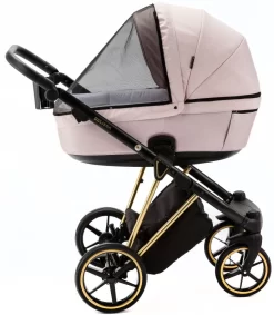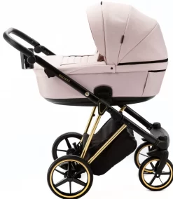 Met de Belissa kinderwagen van Adamex kan je jarenlang veilig en comfortabel op pad met je kindje! Deze 2-in-1 kinderwagen is vanaf de geboorte te gebruiken totdat je kleine 15 kg weegt (ongeveer 3 jaar). Deze special edition wordt geleverd met een gouden frame en ziet er daardoor zeer luxe uit!