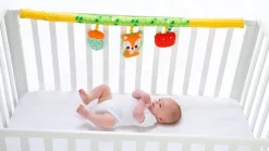 Er valt genoeg te beleven op de vrolijke print en met de drie speeltjes aan de speelboog. Een van deze speeltjes bevat een rammelaar, wat zeker de aandacht van je kindje zal trekken. Deze speelboog is tevens los te maken van het kleed en te bevestigen aan de meeste bedjes of boxen dankzij het veilige universele bevestigingssysteem. Op deze manier kan je het zowel als speelkleed, babygym en speelboogje gebruiken.Â