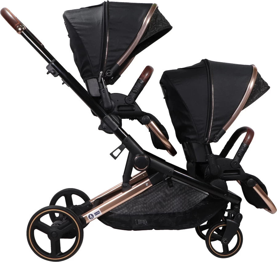 Met de Ding Amigo kan je zorgeloos op pad met twee kindjes. De Ding Amigo Tandem Duowagen kan gebruikt worden voor tweelingen, maar ook voor kindjes met een wat groter leeftijdsverschil. De duowagen wordt geleverd met twee wandelwageninzetten, die je zowel naar je toe als van je af op het frame kan plaatsen. Ook kan je ze op verschillende hoogtes op het frame plaatsen.Â