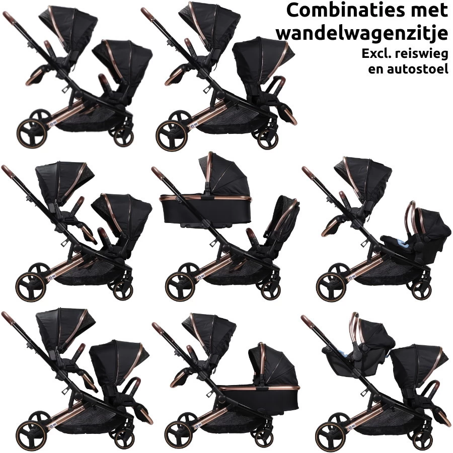 Tandem duowagen met 2 wandelwagenzitjes - Exclusief: