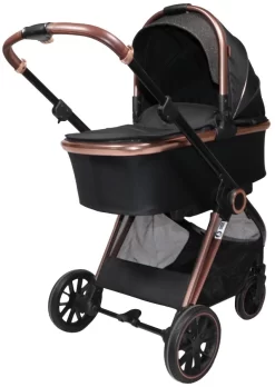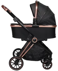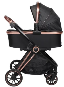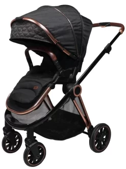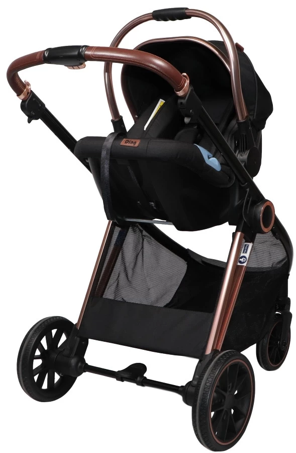 Je haalt een complete luxe 3-in-1 travelset in huis met deze Ding Fenix kinderwagen set! Deze moderne kinderwagen heeft een luxe uitstraling door het shiny bronze aluminium frame in combinatie met de eco-leren details.