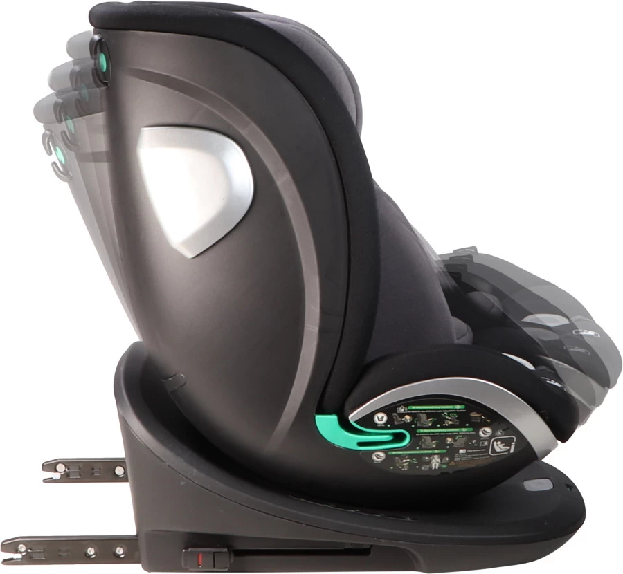 Installatie 100-150cm: installeer de autostoel voorwaarts met behulp van Isofix en de top tether. Verwijder het 5-puntsveiligheidstuigje en maak je kindje vast met de 3-punts autogordel. De hoofdsteun is verstelbaar in maar liefst 15 posities; waardoor hij ideaal met je kindje meegroeit! Wanneer de top tether en autogordel gebruikt wordt is de autostoel niet meer draaibaar.