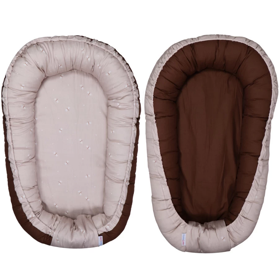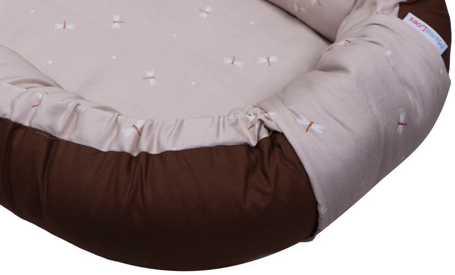 Dit babynestje is voorzien van een stijlvol libelleprintje én aan de andere kant een mooie effen bruine kleur, waardoor je het babynestje kan omkeren. Zo kun je zelf kiezen welke kant aan de buiten/binnenkant zit!