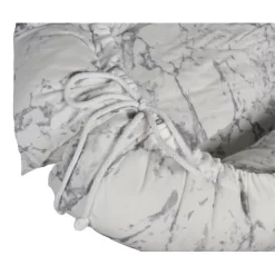 Dit babynestje is voorzien van een stijlvol marmer motiefje en gemaakt van kwalitatief zeer goed materiaal. De buitenkant van dit nestje is gemaakt van 100% katoen en de vulling is gemaakt van 100% polyester. Mocht het nestje vies zijn geworden dan kan je hem met de hand wassen op 40ºC. Dankzij de koordjes kun je de uiteinden van het babynestje makkelijk dicht binden. Het extra lapje met drukkers zorgt ervoor dat je kleine niet bij de touwtjes kan.Â