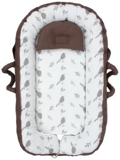 Het nestje heeft een ergonomische vorm en een extra hoofdkussentje. Je kleine zal zich niet snel vervelen, hij is namelijk voorzien van een speelboog met drie schattige kaartjes. Uiteraard is het ook mogelijk om andere speelgoedjes (niet inbegrepen) te bevestigen aan de speelboog. Tevens heeft hij een ruim muskietennet, dat je kindje beschermt tegen insecten. De hoes is gemaakt van 100% katoen en is afneembaar zodat je hem kunt wassen.Â