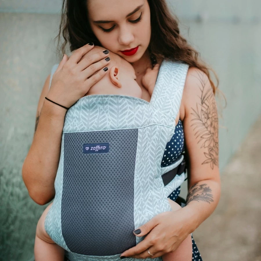 De Zaffiro City Air ergonomische draagzak zorgt voor optimaal comfort voor jou en je kindje! De City Air is speciaal ontworpen met gedeeltelijk mesh stof, wat zorgt voor perfect lucht- en vochtcirculatie. Deze stof bevindt zich bij de rug van het kindje, bij de schouder en bij de heupgordel.