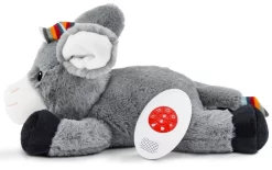 Met dit leuke kalmerende Ezeltje van Zazu zal je kindje heerlijk slapen! Deze leuke zachte knuffel, die vast te maken is aan de box of het bedje, produceert zes verschillende geluiden. Vier rustgevende melodietjes, het geluid van een waterval en het geluid van een hartslag die van de moeder is nagebootst.